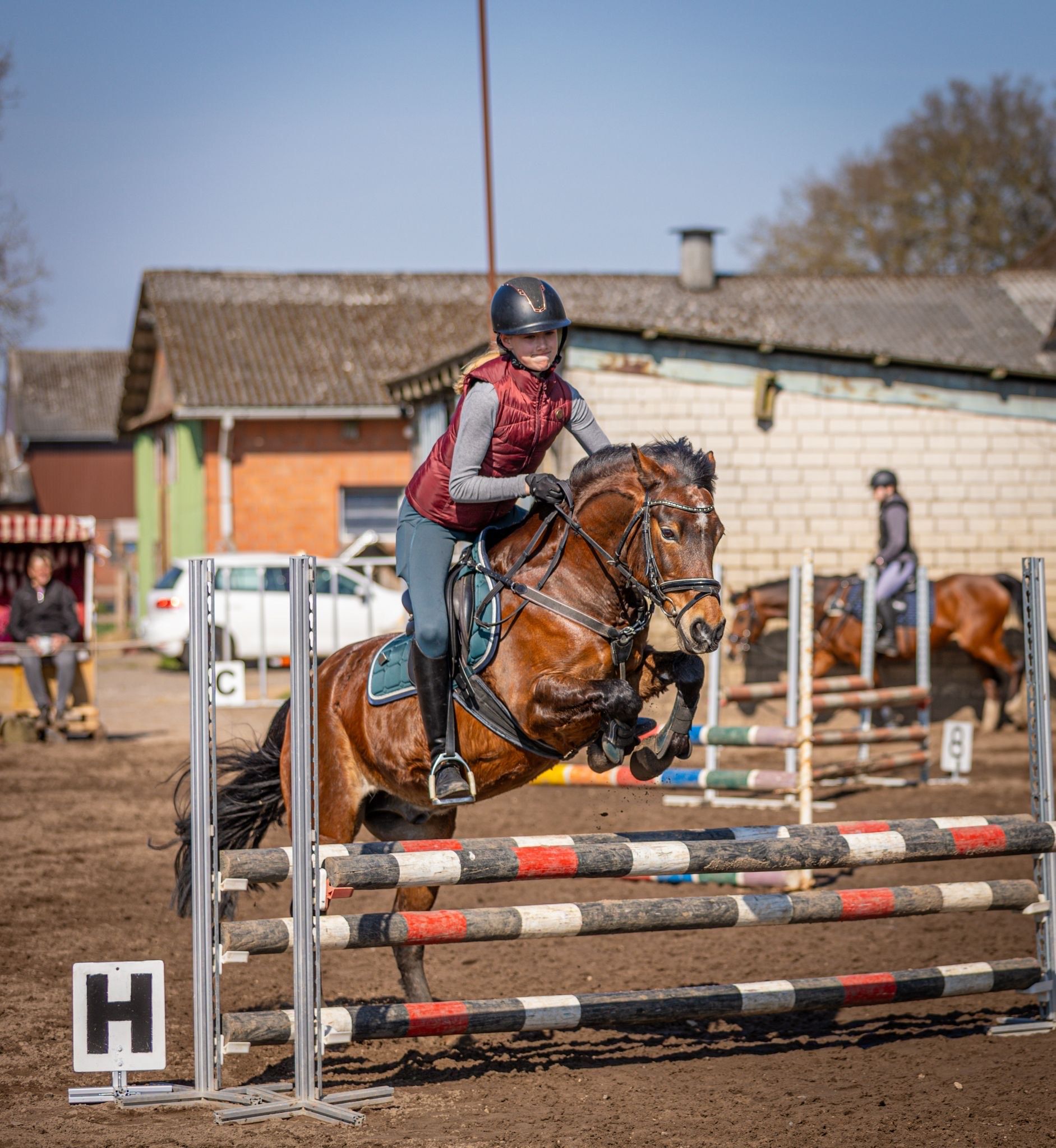 Die Reitsparte erneuert erfolgreich Die Reitsparte TSV Breiholz hat sich in Waabs das erste Mal in einem Abteilungswettkampf vorgestellt. Dafür sind Ida Schmidt und Hanna Wichmann jeweils ein E Stil Springen und Katja Kahlcke und Freda Thöming eine E Dressur geritten um somit Punkte für die Mannschaftswertung zu sammeln. Zum Schluss sind die 4 Reiterinnen dann noch eine Abteilung, vorgestellt von Cora Wichmann, geritten und haben einen schönen 6. Platz belegt. Durch unsere neue Standarte konnten wir unseren Verein dann auch in der Siegerehrung toll repräsentieren. Nur ein Tag später traten die Breiholzer Jumper zum 4. Mal in der Saison in einem Mannschaftsspringen, diesmal in Hademarschen mit einem Dressurjoker an. Dabei konnten sie das 3. Mannschaftsspringen - nach Siegen in Meldorf und Aukrug - erneut für sich entscheiden. Die Dressur ist Laureen Thede geritten und im Springen gingen Milena Möller, Hanna Wichmann, Hanna Petersen und Cora Wichmann an den Start.